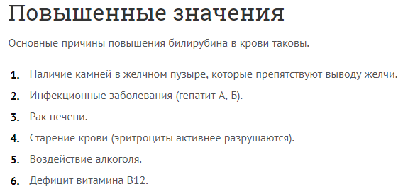 Чаще всего она связана с наличием камней в желчном протоке или желчном пузыре, опухолями печени и поджелудочной железы, гельминтозами. При этом повышение общего билирубина в крови происходит преимущественно за счет прямого (конъюгированного).