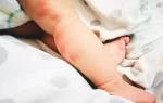 Крапивница проявляется красновато-розовыми воспаленными безболезненными высыпаниями на коже (у грудничков чаще на лице и на коже рук), зудящими или без зуда, обычно не мокнущими.
